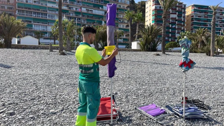 El Ayuntamiento de Almuñécar, en la costa de Granada, ha activado a principios de agosto la campaña informativa en la que inspecciona las sombrillas y enseres que se encuentran sin ocupación o abandonados, sobre todo en primera línea de playa de los arenales más concurridos, recordándoles con un adhesivo que no se puede guardar sitio o de lo contrario pueden ser retirados.