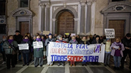 Un grupo de personas participan en la concentración a favor de Juana Rivas