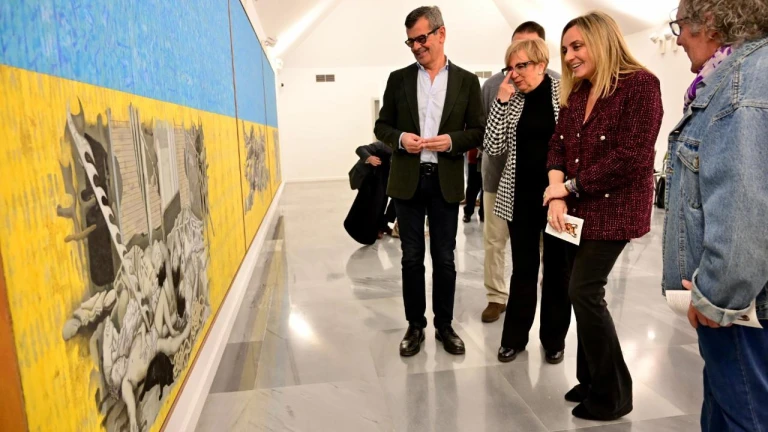 El Cuarto Real de Santo Domingo ha acogido esta mañana la presentación de la obra pictórica “Ucranianos” del artista Juan Manuel Brazam que, con un formato de grandes dimensiones, lleva a cabo un homenaje a la heroicidad demostrada por el pueblo ucraniano ante la invasión perpetrada por Rusia. Se trata de una obra pictórica integrada por tres composiciones, en las que el artista nacido en Alhama de Granada en 1942, refleja la atrocidad de la invasión, el sufrimiento del pueblo ucraniano y la heroicidad con la que está haciendo frente a la ocupación rusa.