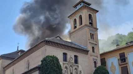 Efectivos de Bomberos de Granada se han desplazado pasado el mediodía de este lunes al entorno de la iglesia de Santa Ana, en el entorno de Plaza Nueva, en el centro histórico de la ciudad de la Alhambra, donde en un edificio desocupado de la trasera de este enclave patrimonial se ha declarado un incendio, que no ha dejado daños personales y está controlado.