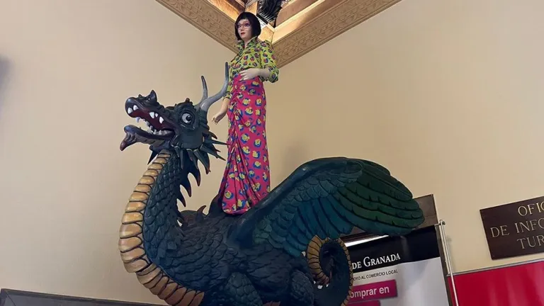 El desfile de la Tarasca, el maniquí sobre un dragón que anuncia los días grandes del Corpus en Granada, ha sido suspendido a causa de la lluvia que cae sobre la capital granadina en la mañana de este miércoles, pese a lo cual las puertas de la sede principal del Ayuntamiento permanecerán abiertas para quien quiera verla pueda hacerlo en el hall del antiguo convento de la Plaza del Carmen, en el centro de la ciudad.