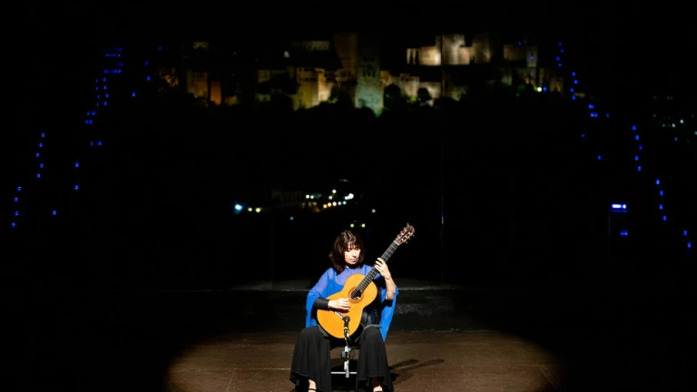 El concierto que interpretó Margarita Escarpa en el V Festival de la Guitarra de Granada estuvo marcado por la calidad de la intérprete y la belleza conmovedora del fondo que propone escenario del Auditorio Enrique Morente-La Chumbera, en el que a través de sus cristales se aprecia una imponente vista de la margen izquierda del valle del Darro, en la que destacan las torres y murallas de la Alhambra.