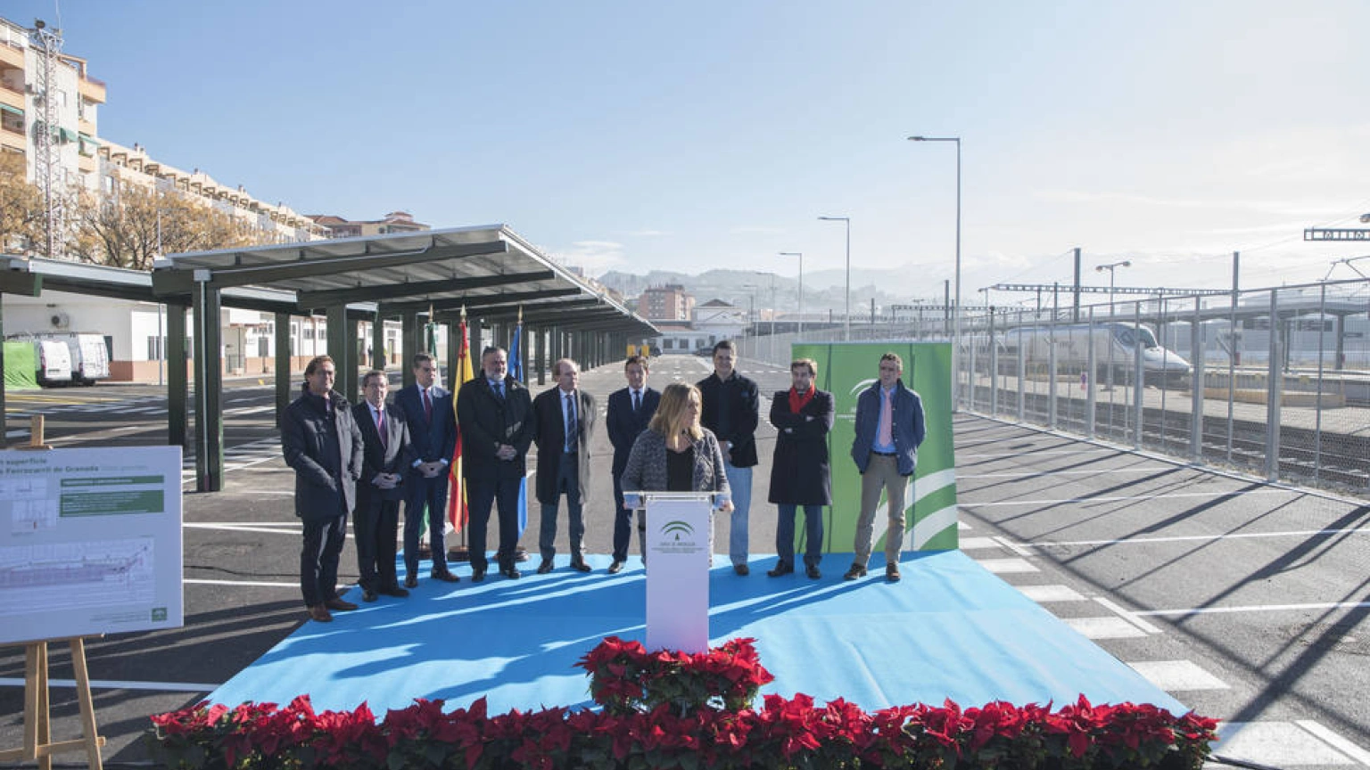 A la inauguración del nuevo aparcamiento han asistido, acompañando a la consejera Marifrán Carazo y al alcalde de Granada, el delegado del Gobierno de la Junta en Granada, Pablo García; el delegado territorial en Granada de Fomento, Infraestructuras y Ordenación del Territorio, Cultura y Patrimonio Histórico, Antonio Granados; el director de la Agencia Obra Pública de la Junta de Andalucía, Julio Caballero; el subdirector de Estaciones Sur de Adif, Francisco Campaña, y el jefe de Infraestructuras, Aurea Vilchez.