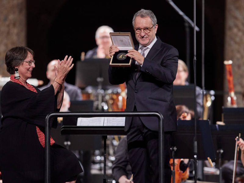 Antes del comienzo de la segunda parte se distinguió a Josep Pons con la Medalla del Festival, que le fue entregada por Elena García de Paredes, Gerente del Archivo Manuel de Falla, reconociendo así la trayectoria del catalán que como recordó Antonio Moral, director del ciclo, ya estuvo en su programación incluso con anterioridad a su etapa al frente de la OCG. Con sentido del humor, Pons recordó las críticas que recibía por su negativa a ofrecer bises durante su titularidad en la orquesta granadina, salvo en su concierto de despedida. Anoche tampoco se produjo ningún regalo añadido a lo anunciado, pero los asistentes disfrutaron del espectáculo.