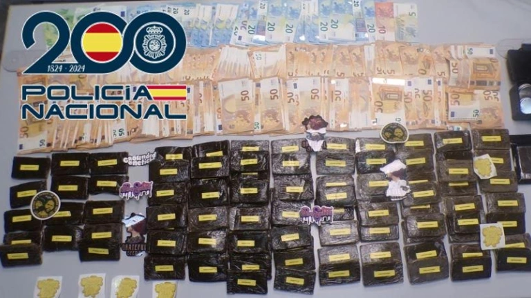 Al inspeccionar el sótano, los investigadores registraron una primera habitación en la que hallaron 98 planchas de hachís envueltas en plástico y etiquetadas, alcanzando un peso superior a los 4,8 Kilos y distribuidas en siete bolsas. Por otra parte, también se encontraron, en el interior de un congelador y sobre un armario, seis bolsas de plástico conteniendo más de 1,8 Kilos de cogollos y cerca de 800 gramos de picadura. Esta misma habitación estaba constituida como un laboratorio para producir supuestamente hachís y aceite de hachís, contando con una máquina centrifugadora, dos máquinas para prensar, varias cajas con botes de cristal con una capacidad creciente de hasta 250 ml, junto con pegatinas de productos basados en el aceite de hachís y con apariencia de medicamentos. Una segunda plantación con 61 ejemplares fue incautada en una habitación contigua. Los detenidos, dos varones de 58 y 32 años de edad, ya han pasado a disposición de la autoridad judicial.