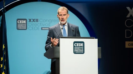 S.M. El Rey ha presidido hoy el acto de clausura del XXII Congreso de Directivos CEDE, ante la presencia de 2.300 directivos y ejecutivos en el Palacio de Congresos de la ciudad, y que ha vuelto a convertirse un año más en el evento de referencia para la cúpula empresarial del país. En esta ocasión, bajo el título ‘Hacia un nuevo liderazgo empresarial’, grandes líderes han debatido sobre el nuevo escenario geopolítico, el futuro de la energía, la gobernanza del agua o la inteligencia artificial entre otras muchas cuestiones, dando claves para potenciar e impulsar las empresas de nuestro país. El acto de clausura también ha contado con las intervenciones destacadas del presidente de la Fundación CEDE, Isidro Fainé, la vicepresidenta primera del Gobierno y ministra de Asuntos Económicos y Transformación Digital en funciones, Nadia Calviño, y el presidente de la Junta de Andalucía, Juanma Moreno.