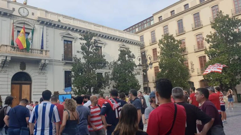 En torno a un centenar de aficionados del Granada se concentran en la Plaza del Carmen