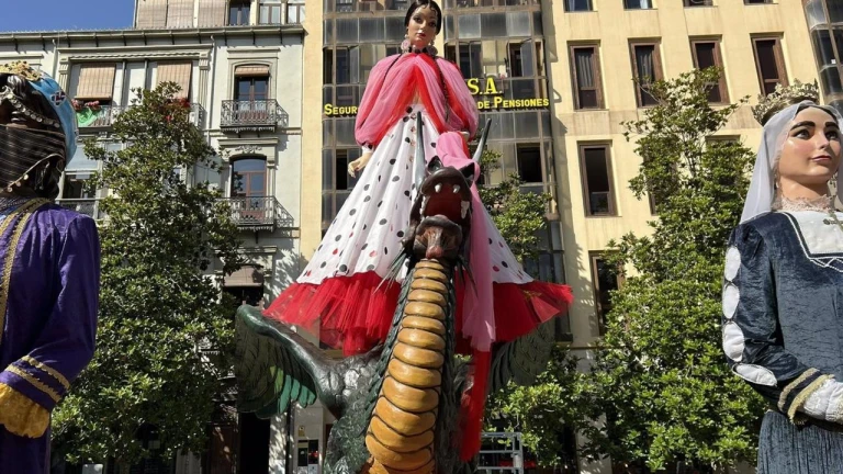 La Tarasca anuncia a partir del mediodía de este miércoles los días grandes del Corpus en Granada vistiendo un traje con top de mangas abullonadas de tul rosa y rojo y falda blanca con bordados en negro "inspirado en una mujer valiente, tradicional y actual", que ya ha suscitado los comentarios de vecinos y visitantes en las calles del centro de la capital granadina, en las que este jueves tendrá lugar la procesión religiosa, que también cierra este popular maniquí a lomos de un dragón.
