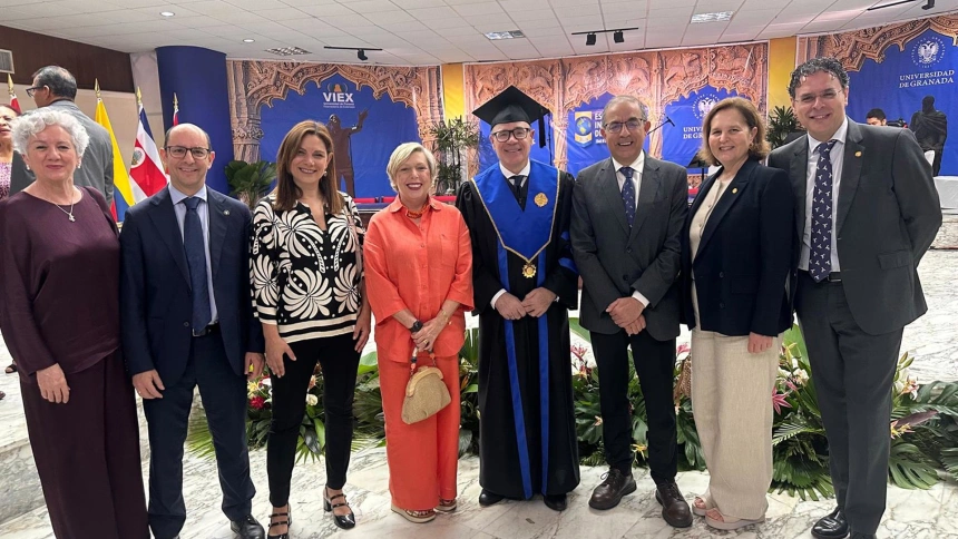 En su discurso, el rector de la UGR ha afirmado recibir el doctorado "con humildad, gratitud y un profundo sentido de la responsabilidad". Ha destacado además el vínculo de dos universidades "hermanas" en la tarea de seguir "abriendo puentes, trayectos formativos de ida y vuelta, oportunidades".