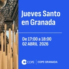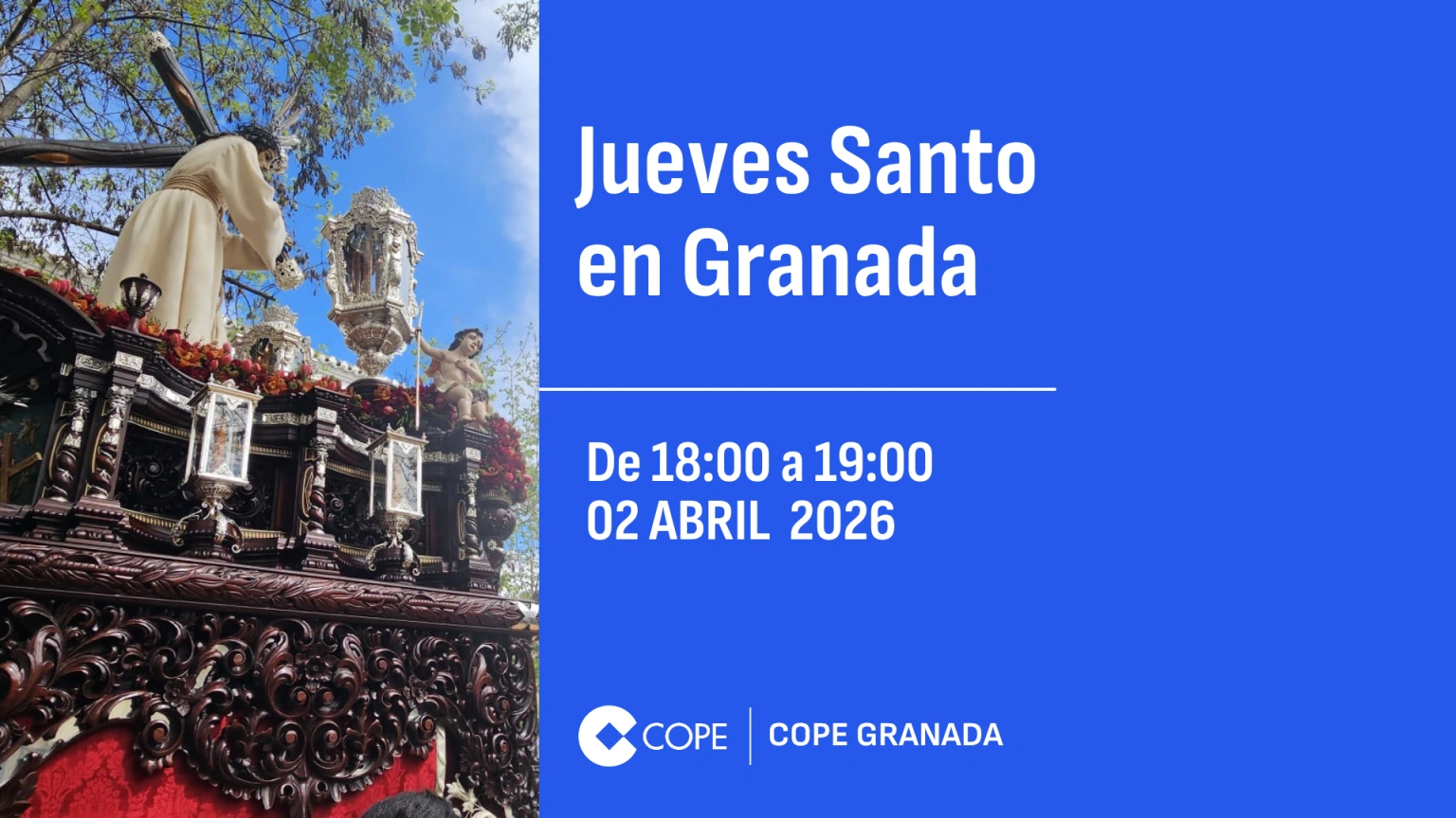 Programación local en Granada JUEVES SANTO EN GRANADA 18:00-19:00Leer másRedacción COPE Granada02 abr 2026, 19:00 - 60:00 minDescargarFacebookTwitterWhatsappTelegramEnviar por emailCopiar enlaceMás de Programación local en Granada JUEVES SANTO EN GRANADA 17:00-18:00 02 abr 2026, 18:00 - 59:59 MIN button_listen.placeholder MIERCOLES SANTO EN GRANADA 22:00-23:30 01 abr 2026, 23:00 - 90:00 MIN button_listen.placeholder MIERCOLES SANTO EN GRANADA 21:00-22:00 01 abr 2026, 22:00 - 60:00 MIN button_listen.placeholder MIERCOLES SANTO EN GRANADA 20:00-21:00 01 abr 2026, 20:00 - 60:00 MIN button_listen.placeholder MIERCOLES SANTO EN GRANADA 19:00-20:00 01 abr 2026, 20:00 - 60:00 MIN button_listen.placeholder Ver todos "Hoy, muchas cámaras estarán pendientes del Papa, de sus gestos y de sus palabras en su primera Semana Santa como máximo jerarca de la Iglesia católica" Pilar G. Muñiz Lo último Los pretendidos Wright y Francisco alejan al Barça del play off 02 abr 2026, 21:32 4 min Viernes Santo en Córdoba: siete hermandades entre la madrugada y la noche en el día más sobrecogedor 02 abr 2026, 21:00 0:54 min Aragón se vuelca con el libro infantil y juvenil: el plan para conquistar a los nuevos lectores 02 abr 2026, 18:13 25:17 min Épila entra en la élite: su Semana Santa ya es Fiesta de Interés Turístico de Aragón 02 abr 2026, 18:12 8:28 min 11 grúas y 180 trabajadores: Así avanzan las obras de la nueva Romareda, que se estrenará en otoño de 2027 02 abr 2026, 18:11 17:41 min Herrera en COPE Con Carlos Herrera Lunes a viernes de 06:00h a 13:00h Última hora completa ProgramasProgramas-Herrera en COPECon Carlos HerreraLunes a viernes de 06:00h a 13:00hProgramas-Tiempo de JuegoCon Paco González, Manolo Lama y Juanma CastañoSábados 13:00h-01:00h / Domingos 12:00h-01:30hProgramas-La LinternaCon Ángel ExpósitoLunes a viernes de 19:00h a 23:30hProgramas-El Partidazo de COPECon Juanma CastañoLunes a viernes de 23:30h a 01:30h Últimos audios CÓRDOBA PENITENTE, JUEVES SANTO HORA 4 02 abr 2026, 21:38 1 min SEMANA SANTA EN COPE SEVILLA 02 ABRIL - JUEVES SANTO 4 02 abr 2026, 21:09 1 min CÓRDOBA PENITENTE, JUEVES SANTO HORA 3 02 abr 2026, 20:46 1 min SEMANA SANTA EN COPE SEVILLA 02 ABRIL - JUEVES SANTO 3 02 abr 2026, 19:53 1 min CÓRDOBA PENITENTE, JUEVES SANTO HORA 2 02 abr 2026, 19:39 1 min Último boletín 5:00H | 01 ABR 2026 | BOLETÍN 1 abr 2026, 05:35 Reproducir