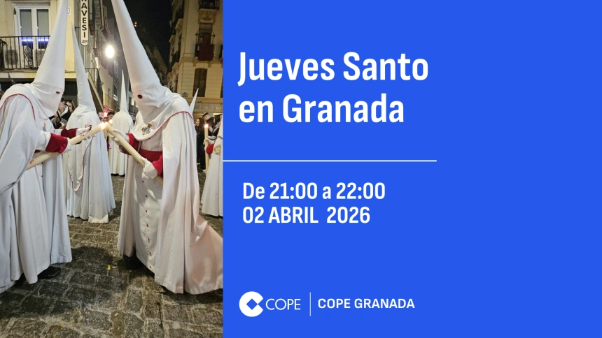 Programación local en Granada JUEVES SANTO EN GRANADA 21:00-22:00Leer másManuel Marín02 abr 2026, 22:00 - 60:00 minDescargarFacebookTwitterWhatsappTelegramEnviar por emailCopiar enlaceMás de Programación local en Granada VIERNES SANTO EN GRANADA 22:00-23:00 03 abr 2026, 23:00 - 60:00 MIN button_listen.placeholder VIERNES SANTO EN GRANADA 21:00-22:00 03 abr 2026, 22:00 - 60:00 MIN button_listen.placeholder VIERNES SANTO EN GRANADA 20:00-21:00 03 abr 2026, 21:00 - 60:00 MIN button_listen.placeholder VIERNES SANTO EN GRANADA 19:00-20:00 03 abr 2026, 20:00 - 60:00 MIN button_listen.placeholder VIERNES SANTO 18:00-19:00 03 abr 2026, 19:00 - 60:00 MIN button_listen.placeholder Ver todos Curiosa paradoja, ¿verdad? Que nos sintamos orgullosos del progreso de la raza humana a la vez que nos seguimos matando entre nosotros Rubén Corral Castellanos Lo último Horario y dónde ver y escuchar el Cádiz CF-Córdoba CF de la jornada 34ª de Liga Hypermotion 03 abr 2026, 23:06 1 min Un tremendo Reuvers impulsa a Valencia Basket a ganar en Bolonia y a rozar el sueño del playoff (81-90) 03 abr 2026, 22:27 3 min Un helicóptero rescata a un perro atrapado en el fondo del Cañón de Almadenes 03 abr 2026, 21:43 0:23 min Noche de fuego, fervor y tradición: La procesión de Granada que tienes que ver al menos una vez en la vida 03 abr 2026, 18:52 5:07 min Así son los 'sanjuaninos', protagonistas de una de las procesiones más carismáticas de Avilés y que se ha hecho viral esta Semana Santa 03 abr 2026, 17:01 2 min La Linterna Con Ángel Expósito Lunes a viernes de 19:00h a 23:30h Última hora completa ProgramasProgramas-Herrera en COPECon Carlos HerreraLunes a viernes de 06:00h a 13:00hProgramas-Tiempo de JuegoCon Paco González, Manolo Lama y Juanma CastañoSábados 13:00h-01:00h / Domingos 12:00h-01:30hProgramas-La LinternaCon Ángel ExpósitoLunes a viernes de 19:00h a 23:30hProgramas-El Partidazo de COPECon Juanma CastañoLunes a viernes de 23:30h a 01:30h Últimos audios CÓRDOBA PENITENTE, VIERNES SANTO HORA 6 03 abr 2026, 23:34 1 min VIERNES SANTO EN GRANADA 22:00-23:00 03 abr 2026, 23:00 1 min SEMANA SANTA EN COPE SEVILLA 03 ABRIL - VIERNES SANTO 4 03 abr 2026, 22:53 1 min CÓRDOBA PENITENTE, VIERNES SANTO HORA 5 03 abr 2026, 22:42 1 min VIERNES SANTO EN GRANADA 21:00-22:00 03 abr 2026, 22:00 1 min Último boletín 5:00H | 01 ABR 2026 | BOLETÍN 1 abr 2026, 05:35 Reproducir