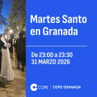 Programación local en Granada MARTES SANTO EN GRANADA 22:00-23:00Leer másRedacción COPE Granada31 mar 2026, 23:00 - 60:00 minDescargarFacebookTwitterWhatsappTelegramEnviar por emailCopiar enlaceMás de Programación local en Granada MARTES SANTO EN GRANADA 23:00-23:30 31 mar 2026, 23:30 - 30:00 MIN button_listen.placeholder MARTES SANTO 21:00-22:00 31 mar 2026, 22:00 - 60:00 MIN button_listen.placeholder MARTES SANTO EN GRANADA 20:00-21:00 31 mar 2026, 21:00 - 60:00 MIN button_listen.placeholder MARTES SANTO EN GRANADA 19:00-20:00 31 mar 2026, 20:00 - 60:00 MIN button_listen.placeholder MARTES SANTO EN GRANADA 18:00-19:00 31 mar 2026, 19:00 - 60:00 MIN button_listen.placeholder Ver todos "Donald Trump está en Irán como Tom Hanks en 'Esta casa es una ruina': atrapado en una promesa que no se cumple" Rubén Corral Castellanos Lo último Problemas de horarios e itinerarios en un Martes Santo en el que las cofradías organizaron cortejos de gran belleza 01 abr 2026, 01:49 3 min El Martes Santo deja estrenos que brillan en las calles de Córdoba 31 mar 2026, 23:09 2 min El precio de la devoción: un traumatólogo desvela las duras lesiones de los hombres de trono 31 mar 2026, 21:40 12:08 min La Semana Santa de Badajoz bate récords de seguimiento con su aplicación 31 mar 2026, 20:13 1 min El legado de fe que une a tres generaciones de portadores en Logroño: El orgullo de compartir la Semana Santa en familia 31 mar 2026, 19:50 9:53 min El Partidazo de COPE Con Juanma Castaño Lunes a viernes de 23:30h a 01:30h Última hora completa ProgramasProgramas-Herrera en COPECon Carlos HerreraLunes a viernes de 06:00h a 13:00hProgramas-Tiempo de JuegoCon Paco González, Manolo Lama y Juanma CastañoSábados 13:00h-01:00h / Domingos 12:00h-01:30hProgramas-La LinternaCon Ángel ExpósitoLunes a viernes de 19:00h a 23:30hProgramas-El Partidazo de COPECon Juanma CastañoLunes a viernes de 23:30h a 01:30h Últimos audios SEMANA SANTA EN COPE SEVILLA 31 MARZO - MARTES SANTO 5 01 abr 2026, 00:04 1 min CÓRDOBA PENITENTE, MARTES SANTO HORA 6 31 mar 2026, 23:36 1 min MARTES SANTO EN GRANADA 23:00-23:30 31 mar 2026, 23:30 1 min MARTES SANTO EN GRANADA 22:00-23:00 31 mar 2026, 23:00 1 min CÓRDOBA PENITENTE, MARTES SANTO HORA 5 31 mar 2026, 22:37 1 min Último boletín 5:00H | 01 ABR 2026 | BOLETÍN 1 abr 2026, 05:35 Reproducir