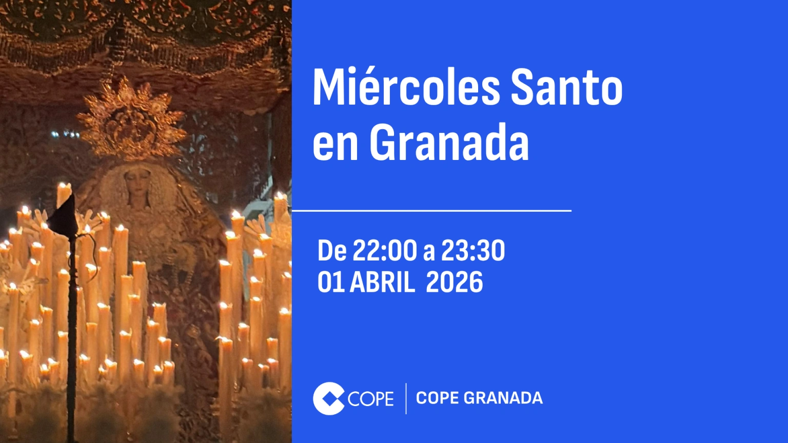 Programación local en Granada MIERCOLES SANTO EN GRANADA 22:00-23:30Leer másRedacción COPE Granada01 abr 2026, 23:00 - 90:00 minDescargarFacebookTwitterWhatsappTelegramEnviar por emailCopiar enlaceMás de Programación local en Granada MIERCOLES SANTO EN GRANADA 21:00-22:00 01 abr 2026, 22:00 - 60:00 MIN button_listen.placeholder MIERCOLES SANTO EN GRANADA 19:00-20:00 01 abr 2026, 20:00 - 60:00 MIN button_listen.placeholder MIERCOLES SANTO EN GRANADA 20:00-21:00 01 abr 2026, 20:00 - 60:00 MIN button_listen.placeholder MIERCOLES SANTO EN GRANADA 01 abr 2026, 19:00 - 60:00 MIN button_listen.placeholder MARTES SANTO EN GRANADA 23:00-23:30 31 mar 2026, 23:30 - 30:00 MIN button_listen.placeholder Ver todos "Si la FIFA se pone dura, puede que no quiera que la final del Mundial de 2030 se juegue en un país en el que se corean cánticos racistas" Rubén Corral Castellanos Lo último La imagen del día de Manolo Oliveros: "Imágenes vergonzosas" 01 abr 2026, 23:11 1:50 min Córdoba se rinde al Miércoles Santo: solemnidad, recogimiento y emoción en las calles 01 abr 2026, 23:07 2 min Daniela Jódar y Pepe y Lucía Albaladejo se instalan en el podio de la Liga Climboox de escalada 01 abr 2026, 22:16 1 min Sito Alonso apela a la épica en Murcia tras sucumbir al "infierno" griego 01 abr 2026, 22:10 4:34 min "En este sector hay una oportunidad de empleo enorme con la nueva ley de FP. Ofrecen buenos salarios, permiten conciliación y cada vez tienen mejor valoración" 01 abr 2026, 20:54 7:30 min El Partidazo de COPE Con Juanma Castaño Lunes a viernes de 23:30h a 01:30h Última hora completa ProgramasProgramas-Herrera en COPECon Carlos HerreraLunes a viernes de 06:00h a 13:00hProgramas-Tiempo de JuegoCon Paco González, Manolo Lama y Juanma CastañoSábados 13:00h-01:00h / Domingos 12:00h-01:30hProgramas-La LinternaCon Ángel ExpósitoLunes a viernes de 19:00h a 23:30hProgramas-El Partidazo de COPECon Juanma CastañoLunes a viernes de 23:30h a 01:30h Últimos audios SEMANA SANTA EN COPE SEVILLA 1 ABRIL - MIERCOLES SANTO 7 01 abr 2026, 23:26 1 min La imagen del día de Manolo Oliveros: "Imágenes vergonzosas" 01 abr 2026, 23:11 1:50 min 15:05 H | 01 ABRIL 2026 | ESPORTS COPE 01 abr 2026, 23:08 1 min MIERCOLES SANTO EN GRANADA 22:00-23:30 01 abr 2026, 23:00 1 min SEMANA SANTA EN COPE SEVILLA 1 ABRIL - MIERCOLES SANTO 6 01 abr 2026, 22:52 1 min Último boletín 5:00H | 01 ABR 2026 | BOLETÍN 1 abr 2026, 05:35 Reproducir