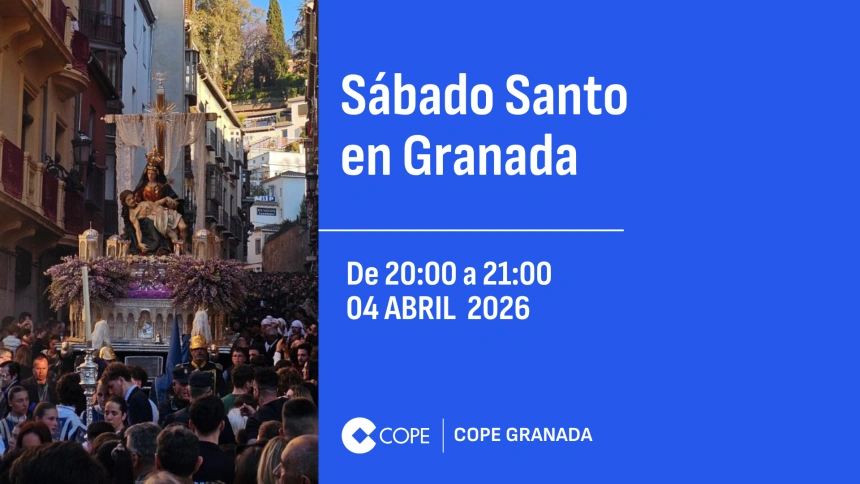 Programación local en Granada SABADO SANTO EN GRANADA 20:00-21:00Leer másRedacción COPE Granada04 abr 2026, 21:00 - 60:00 minDescargarFacebookTwitterWhatsappTelegramEnviar por emailCopiar enlaceMás de Programación local en Granada DOMINGO DE RESURRECION 13:00-14:00 05 abr 2026, 14:00 - 60:00 MIN button_listen.placeholder DOMINGO DE RESURRECION EN GRANADA 12:00-13:00 05 abr 2026, 13:00 - 60:00 MIN button_listen.placeholder SABADO SANTO 21:00-22:00 04 abr 2026, 22:00 - 60:00 MIN button_listen.placeholder SABADO SANTO EN GRANADA 19:00-20:00 04 abr 2026, 20:00 - 60:00 MIN button_listen.placeholder VIERNES SANTO EN GRANADA 22:00-23:00 03 abr 2026, 23:00 - 60:00 MIN button_listen.placeholder Ver todos "Ayer en la noche de Pascua, 21.300 personas se bautizaron en Francia. Algo está ocurriendo en las iglesias de Escandinavia, de Islandia, incluso en España. Como si la gente volviese a preguntarse sobre el sentido de las cosas" Cristina L. Schlichting Lo último La procesión del Resucitado ilumina Cartagena y pone el broche de oro a su Semana Santa 05 abr 2026, 18:56 2 min Drones, perros y voluntarios buscan sin descanso a José Antonio, el hombre desaparecido en Cáceres 05 abr 2026, 18:26 1 min Checa se rinde a la Deportiva Minera: "Este equipo quiere más y hay que ser ambicioso" 05 abr 2026, 16:41 4:32 min Germán Crespo señala los 'detalles' que le cuestan el liderato al UCAM Murcia 05 abr 2026, 16:29 4:51 min Murcia se viste de huerta para dar comienzo a sus Fiestas de Primavera 05 abr 2026, 15:27 2 min El Partidazo de COPE Con Juanma Castaño Lunes a viernes de 23:30h a 01:30h Última hora completa ProgramasProgramas-Herrera en COPECon Carlos HerreraLunes a viernes de 06:00h a 13:00hProgramas-Tiempo de JuegoCon Paco González, Manolo Lama y Juanma CastañoSábados 13:00h-01:00h / Domingos 12:00h-01:30hProgramas-La LinternaCon Ángel ExpósitoLunes a viernes de 19:00h a 23:30hProgramas-El Partidazo de COPECon Juanma CastañoLunes a viernes de 23:30h a 01:30h Últimos audios Checa se rinde a la Deportiva Minera: "Este equipo quiere más y hay que ser ambicioso" 05 abr 2026, 16:41 4:32 min Germán Crespo señala los 'detalles' que le cuestan el liderato al UCAM Murcia 05 abr 2026, 16:29 4:51 min 13:48H | 05 ABRIL 2026 | FIN DE SEMANA COPE EN ANDALUCÍA 05 abr 2026, 14:09 1 min 13:48H | 04 ABRIL 2026 | FIN DE SEMANA COPE EN ANDALUCÍA 05 abr 2026, 14:09 1 min 11:49H | 04 ABRIL 2026 | FIN DE SEMANA COPE EN ANDALUCÍA 05 abr 2026, 14:08 1 min Último boletín 5:00H | 01 ABR 2026 | BOLETÍN 1 abr 2026, 05:35 Reproducir