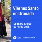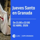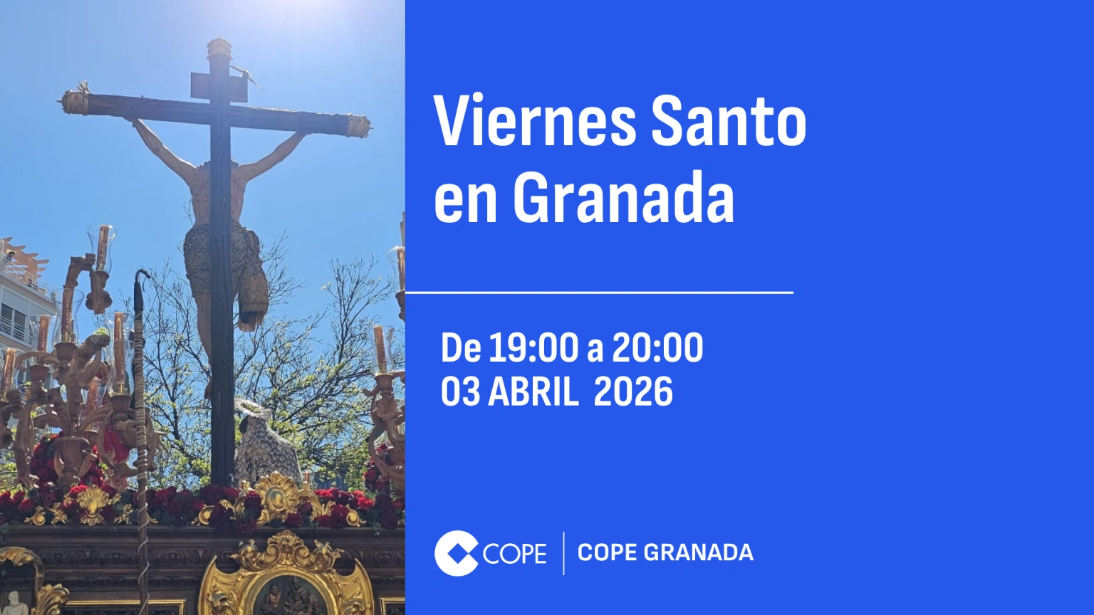 Programación local en Granada VIERNES SANTO EN GRANADA 19:00-20:00Leer másRedacción COPE Granada03 abr 2026, 20:00 - 60:00 minDescargarFacebookTwitterWhatsappTelegramEnviar por emailCopiar enlaceMás de Programación local en Granada VIERNES SANTO 18:00-19:00 03 abr 2026, 19:00 - 60:00 MIN button_listen.placeholder JUEVES SANTO EN GRANADA 22:00-23:00 02 abr 2026, 23:00 - 60:00 MIN button_listen.placeholder JUEVES SANTO EN GRANADA 21:00-22:00 02 abr 2026, 22:00 - 60:00 MIN button_listen.placeholder JUEVES SANTO EN GRANADA 18:00-19:00 02 abr 2026, 19:00 - 60:00 MIN button_listen.placeholder JUEVES SANTO EN GRANADA 17:00-18:00 02 abr 2026, 18:00 - 59:59 MIN button_listen.placeholder Ver todos Curiosa paradoja, ¿verdad? Que nos sintamos orgullosos del progreso de la raza humana a la vez que nos seguimos matando entre nosotros Rubén Corral Castellanos Lo último Un helicóptero rescata a un perro atrapado en el fondo del Cañón de Almadenes 03 abr 2026, 21:43 0:23 min Noche de fuego, fervor y tradición: La procesión de Granada que tienes que ver al menos una vez en la vida 03 abr 2026, 18:52 5:07 min Así son los 'sanjuaninos', protagonistas de una de las procesiones más carismáticas de Avilés y que se ha hecho viral esta Semana Santa 03 abr 2026, 17:01 2 min CAMPO Y SAL | 03 ABRIL 2026 03 abr 2026, 16:44 24:08 min Un joven de 18 años mata a su padrastro en Villaviciosa (Asturias) en una discusión en el domicilio familiar 03 abr 2026, 16:24 0:51 min La Linterna Con Ángel Expósito Lunes a viernes de 19:00h a 23:30h Última hora completa ProgramasProgramas-Herrera en COPECon Carlos HerreraLunes a viernes de 06:00h a 13:00hProgramas-Tiempo de JuegoCon Paco González, Manolo Lama y Juanma CastañoSábados 13:00h-01:00h / Domingos 12:00h-01:30hProgramas-La LinternaCon Ángel ExpósitoLunes a viernes de 19:00h a 23:30hProgramas-El Partidazo de COPECon Juanma CastañoLunes a viernes de 23:30h a 01:30h Últimos audios CÓRDOBA PENITENTE, VIERNES SANTO HORA 4 03 abr 2026, 21:39 1 min VIERNES SANTO EN GRANADA 20:00-21:00 03 abr 2026, 21:00 1 min CÓRDOBA PENITENTE, VIERNES SANTO HORA 3 03 abr 2026, 20:49 1 min SEMANA SANTA EN COPE SEVILLA 03 ABRIL - VIERNES SANTO 2 03 abr 2026, 20:14 1 min VIERNES SANTO EN GRANADA 19:00-20:00 03 abr 2026, 20:00 1 min Último boletín 5:00H | 01 ABR 2026 | BOLETÍN 1 abr 2026, 05:35 Reproducir
