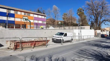 María José Martín y el alcalde de Guadix Jesús Lorente supervisan las obras del muro del colegio Medina Olmos