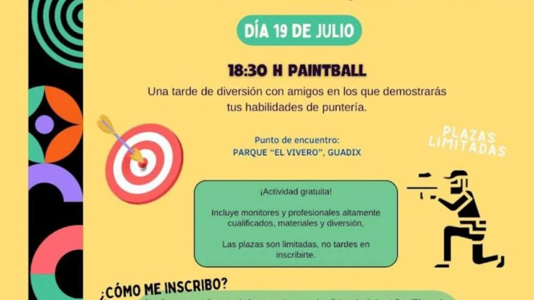 La concejalía de Juventud del Ayuntamiento de Guadix, representada por Sofía Aparicio, informa que se ha iniciado el plazo de inscripción para la actividad de Paintball, otra actividad del programa municipal “Jóvenes activos en su comarca” de ocio y tiempo libre juvenil de la concejalía de Juventud.