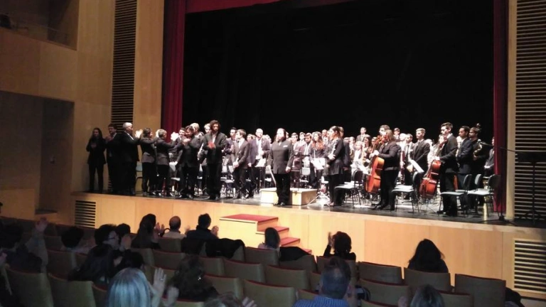 El gran concierto celebrado este domingo en el Teatro Mira de Amescua ha puesto el cierre al I Curso Nacional de Dirección Musical que se ha estado celebrando en Guadix desde el pasado martes y que ha dejado una excelente impresión tanto entre el alumnado como entre las agrupaciones musicales que han participado en la fase práctica, entre ellas la Banda Sinfónica Municipal de Guadix. Ha sido todo un evento musical de alcance nacional que ha dejado el nivel muy alto y que ha contado con el Maestro García Asensio como docente de excepción. El concierto del domingo, dedicado al Día de Andalucía, ha sido un cierre de calidad al nivel del curso y ha supuesto una oportunidad para el público accitano, que ha podido disfrutar de la maestría del prestigioso director Enrique García Asensio y de los conocimientos adquiridos por los quince alumnos participantes. El Teatro Mira de Amescua se llenó casi al completo para asistir a este concierto atípico que contó con quince directores, entre ellos el Maestro García Asensio; y en el que hubo además orquesta y banda, con un total de 125 músicos. La velada estuvo presentada por el periodista accitano Jesús Javier Pérez. En su intervención, la alcaldesa accitana Inmaculada Olea Laguna agradecía la oportunidad que se ha brindado a los accitanos de tomar parte como público en este curso que deja en Guadix un recuerdo especial y que “sitúa a nuestra ciudad como referente nacional”. E hizo entrega al Maestro García Asencio de una reproducción de la fachada del Ayuntamiento. “La ciudad de Guadix quiere que Enrique García Asensio tenga también un recuerdo inolvidable de su participación en este curso y de su presencia en Guadix”. Olea Laguna cerró su intervención invitándole a volver “tantas veces como quiera a esta ciudad que siempre la recibirá con los brazos abiertos. Y en la que espero que en el futuro haya nuevas citas de calidad como ésta”. Tanto para la realización de las clases prácticas como la celebración de este gran concierto se ha contado con la participación de la Banda Sinfónica Municipal de Guadix, de la Banda del Conservatorio Profesional Carlos Ros y de la Orquesta Filarmonía.
