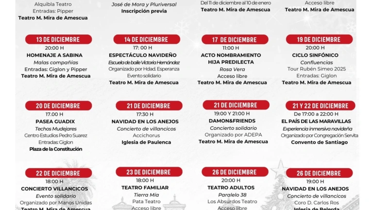 El Ayuntamiento de Guadix, a través de su concejalía de Cultura, ha presentado oficialmente la programación navideña para la temporada 2025-2026. Se trata de una propuesta amplia y diversa que busca animar las fiestas con actividades culturales diseñadas para todos los públicos.