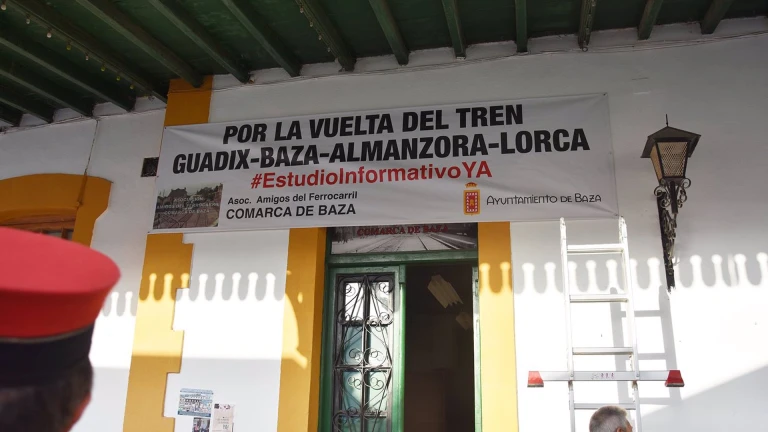 Curiosamente, durante toda la feria se ha mantenido expuesta en la fachada de la sede de la asociación Amigos del Ferrocarril Comarca de Baza, en un local cedido por el Ayuntamiento en el andén de la antigua estación, una pancarta pidiendo la terminación del estudio informativo, del que, han enfatizado desde el consistorio bastetano, "sólo se ha concluido la fase cero con el peor resultado posible".