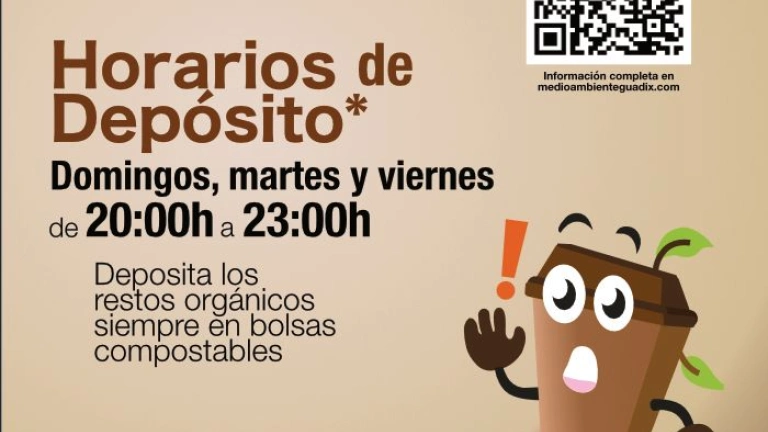 La ciudadanía deberá depositar los restos de residuos orgánicos en bolsas de basura compostables cerradas, las cuales se están repartiendo junto con el cubo marrón durante estas semanas, los martes, viernes y domingos de 20:00 a las 23:00 horas, en los nuevos contenedores marrones que se están instalando en estos días.