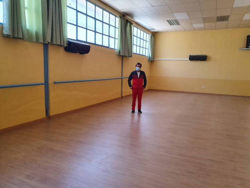 Por su parte, en el Pabellón Municipal José Manuel Ruiz, se ha llevado a cabo una actuación de envergadura en la sala de mantenimiento, donde se han eliminado las humedades presentes dotando al suelo de un tratamiento especial mediante un hormigonado y nivelado del suelo. La actuación ha contemplado además la instalación de tarima flotante (la anterior superficie era una especie de goma y estaba en muy mal estado desde hace varios años por la humedad, lo cual hacia muy difícil la práctica deportiva) y los espejos que hay en la pared junto a la entrada. También se ha procedido a cambiar los pomos de varias puertas del recinto y la mejora de otros elementos del mismo.