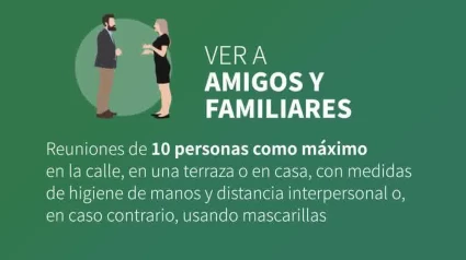 Ver a amigos y familiares, pueden viajar en el mismo vehiculo y provincia personas que vivien juntos, abren museos, blbliotecas, comercios, terrazas de bares al 50 %, e Iglesias.