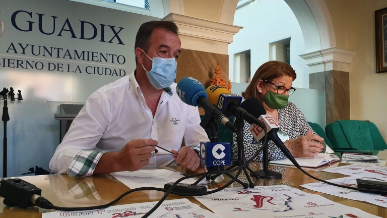 El concejal de Deportes, Jesús Samaniego, ha presentado esta mañana la XXXV Prueba de Fondo del Melocotón y XIII Media Maratón Ciudad de Guadix enmarcada en el Gran Premio de Fondo de Diputación, que se celebrará este domingo 19 de septiembre a partir de las 10:00 horas con un recorrido de 21 kilómetros con salida y llegada desde la Plaza de la Constitución. Junto al edil de Deportes ha estado la presidenta de la Junta Local de la Asociación Contra el Cáncer de Guadix, Marí Rosa Salmerón, ya que un año más la prueba tendrá un carácter solidario. Tal y como ha informado el concejal de Deportes, tras tener que suspenderse la anterior edición por la pandemia, este año las circunstancias sanitarias favorables han permitido que se vuelva a realizar una de las pruebas con mayor tradición en el panorama deportivo accitano. Eso sí, la prueba estará marcada este año por los protocolos sanitarios anticovid. En este sentido se ha reducido la participación de atletas a 350, de los cuales unos 75 deportistas son accitanos. La salida también se ha modificado, ya que se hará por tandas de 30 o 40 corredores. Los avituallamientos estarán en los puntos de todos los años, aunque en esta ocasión tan sólo serán líquidos, una medida adoptada dentro de protocolo de prevención del Covid-19. El concejal de Deportes, Jesús Samaniego, ha hecho un llamamiento a los corredores para que tanto las botellas de líquidos como los tapones las tiren en los contenedores que habrá a cien metros de los puestos de avituallamiento, para mantener limpios nuestros campos y contribuir a cuidar el medio ambiente. La entrega de dorsales para los atletas no locales será el domingo 19 de septiembre en la Plaza de la Constitución desde las 8:00 a las 9:30 horas. Para los atletas locales la recogida de dorsales será el sábado 18 de septiembre de 9:00 a 12:00 horas en el teatro municipal Mira de Amescua. Jesús Samaniego ha querido agradecer la labor de Policía Local, Guardia Civil, Guardia Civil Tráfico, Bomberos, Protección Civil, la asociación Ángeles Verdes, los clubes accitanos, y especialmente a todos los voluntarios que colaboran para que este evento se pueda realizar con todas las garantías. La carrera tendrá un año más un aspecto solidario importante. En este sentido, tal y como ha explicado Marí Rosa Salmerón, la Junta Local de la Asociación Contra el Cáncer de Guadix ofrecerá un dorsal solidario que los deportistas podrán adquirir en la retirada de su dorsal oficial por tan solo 5 euros tanto el sábado como el domingo. Así la persona que lo adquiera contribuirá con la gran labor que realiza la Asociación, tanto en investigación contra el cáncer como en apoyo y ofreciendo diferentes servicios a las personas que padecen esta enfermedad.