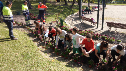 Unos 200 niños y niñas plantan flores en el Parque de los Pueblos de América de Motril. Se trata de una actividad al aire libre de carácter social, inclusiva y medio ambiental con diversos colegios motrileños y el centro Aprosmo. Redacción Digital