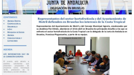 La delegación de la Junta en Bruselas dedica la portada de su principal canal de comunicación a la visita del sector agrícola motrileño. Flor Almón, alcaldesa de Motril. Redacción Digital