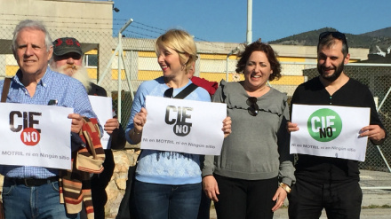 Izquierda Unida, colectivos sociales y organizaciones humanitarias, rechazan ante el EVA 9 su posible utilización como centro de internamiento de inmigrantes CIE. Daniela Paqué, portavoz municipal y Mari Carmen Pérez, parlamentaria Andaluza. Redacción Digital