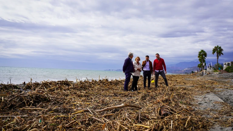 Las playas de Motril aparecen cubiertas de restos de vegetación arrastrada por el río Guadalfeo