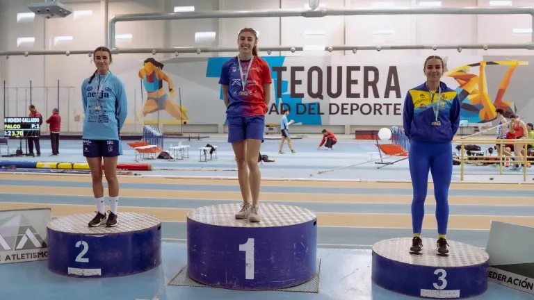 A lo más alto del podio, y por lo tanto logrando el título de campeonas, se subieron Paula Molina y Noelia Cañestro. En el caso de Paula lo hizo en la prueba de 200 metros lisos, consiguiendo imponerse en la semifinal y en la final con una marca de 24:99. Por su parte, Noelia ganó en los 60 metros vallas con un espectacular registro de 9:01, que además suponía mejor marca personal.