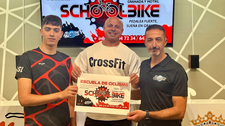 Daniel Ortega Moreno, teniente de alcalde de Deportes del Ayuntamiento de Motril, acompañado por Javier Delgado, propietario de la tienda Bicicletas de Motril, y Adán Espejo, monitor del Espejo Bike Team, presentaron la escuela de ciclismo ‘School Bike’. Una iniciativa que se consolida en Motril y Granada con el objetivo de seguir formando a niños y jóvenes en este deporte, uniendo aprendizaje técnico y valores como el esfuerzo, la disciplina y el compañerismo.