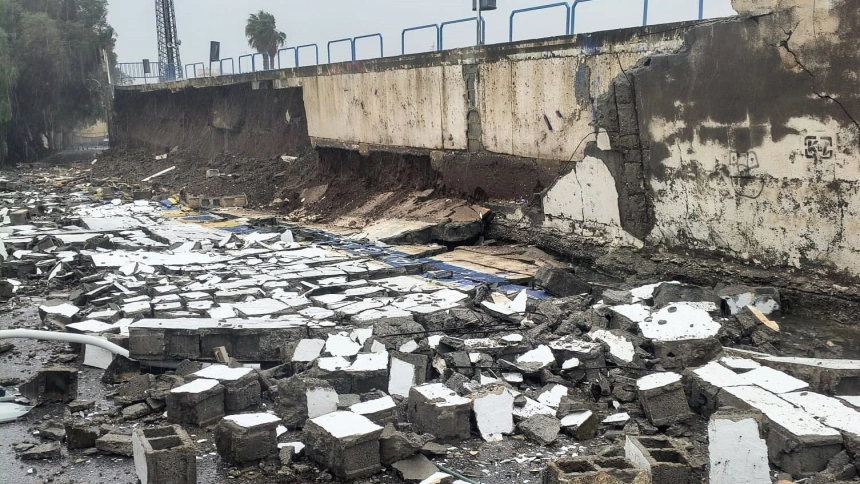 El impacto de la borrasca ‘Kristin’ provocó la caída del muro de la zona de general del estadio Escribano Castilla