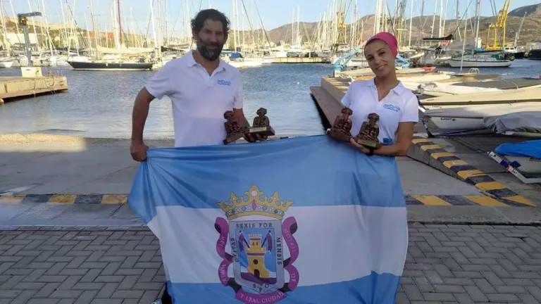 Los regatistas Sonia Hidalgo y Ángel Ballesteros en el podio del Circuito Nacional snipe