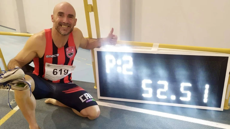 En la especialidad de los 400 metros lisos paró el reloj en 52.92, lo que a su vez es el nuevo récord de pista cubierta y también al aire libre. Hay que mencionar que cuando se mejora la marca de aire libre en pista cubierta, que se supone se corre más lento, en estas categorías la Federación Española de Atletismo también lo considera como récord de aire libre.
