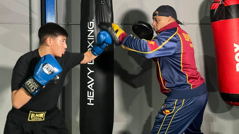 Unai Gómez ejercitándose en pleno entrenamiento con su técnico