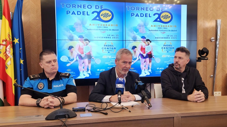 Las instalaciones de Pádel Center S. Merino, en colaboración con PM Global Academy, y del 10 al 15 de noviembre de 2025, acogerán el Torneo ‘20 Aniversario Autoridad Portuaria Motril’. En el acto de presentación de torneo estuvieron presentes José García Fuentes, presidente de la Autoridad Portuaria de Motril; Paco Miranda, gerente de Pádel Center S. Merino; y David Vargas, del Comité de Empresa de la Autoridad Portuaria; quienes informaron de los pormenores del evento.