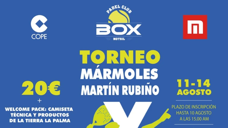 Vuelve el "Torneo de Pádel Mármoles Martín Rubiño, del 11 al 14 de agosto en las instalacines de Padel Club BOX Motril.