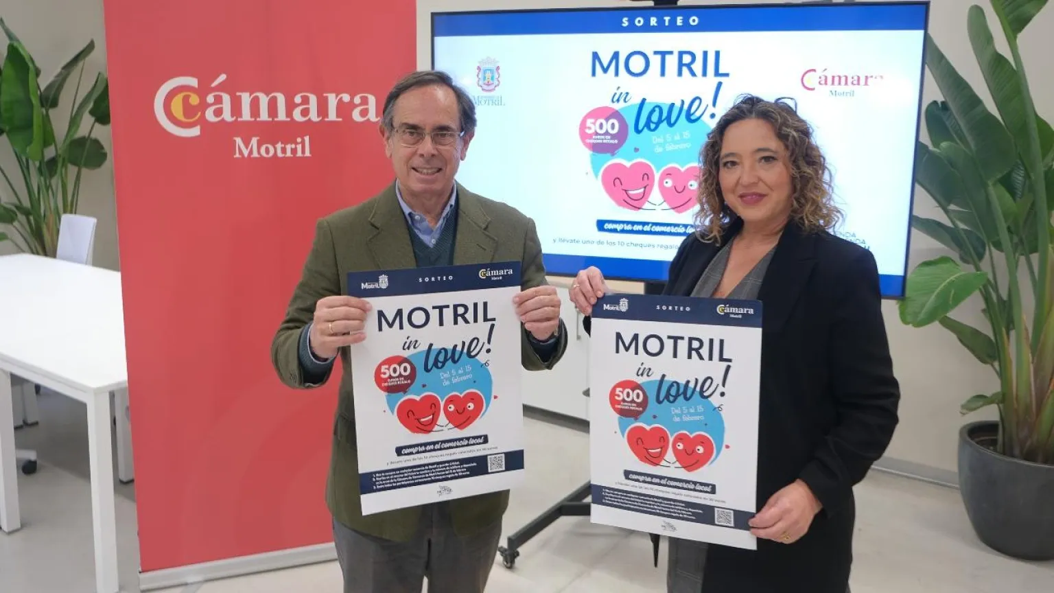 La Cámara de Comercio de Motril ha presentado la nueva campaña de dinamización del comercio local con motivo de la festividad de San Valentín. Bajo el nombre ‘Motril in love’, la entidad cameral, junto al Área de Comercio del Consistorio motrileño, repartirá 500 euros en cheques regalo entre todos los clientes que realicen sus compras en el comercio de Motril hasta el 15 de febrero y depositen posteriormente el ticket, con sus datos al reverso, en la urna ubicada en el Coworking Motril Conecta de la Cámara de Comercio de Motril.