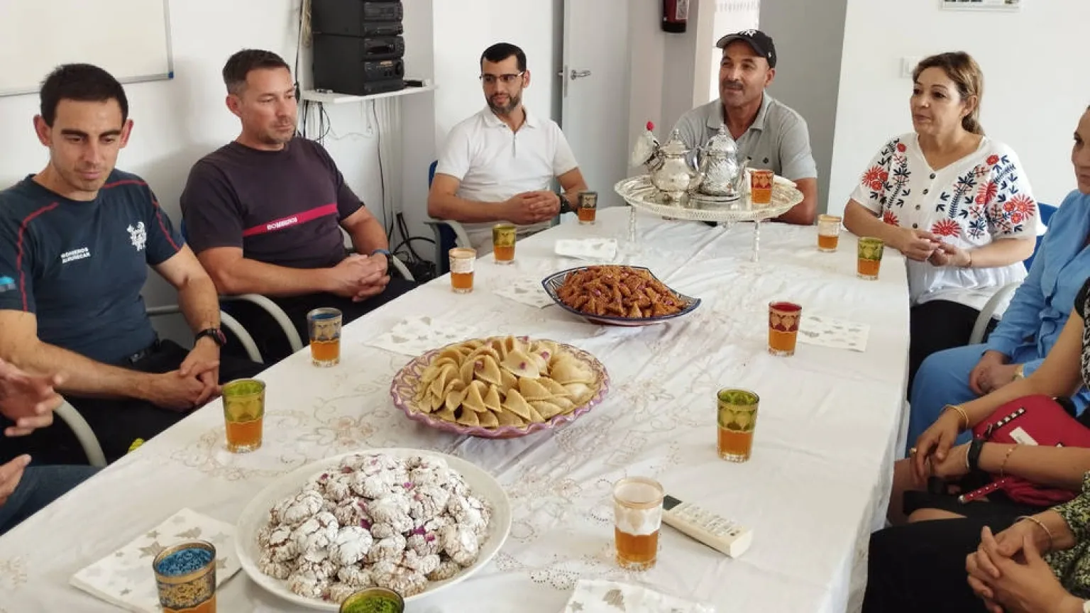 Con tal motivo, una representación visitó el Parque de Bomberos de Almuñécar “para dar las gracias personalmente y hacer entrega de una placa con fotografías de la actuación de los bomberos sexitanos en la zona”, También ofrecieron un té y pastas típicas de Marruecos durante la recepción, al tiempo que los bomberos participantes comentaron la experiencia vivida durante las tareas de búsqueda de supervivientes en la zona encomendada por las autoridades marroquíes, además de agradecer el “detalle” del colectivo marroquí en Almuñécar.