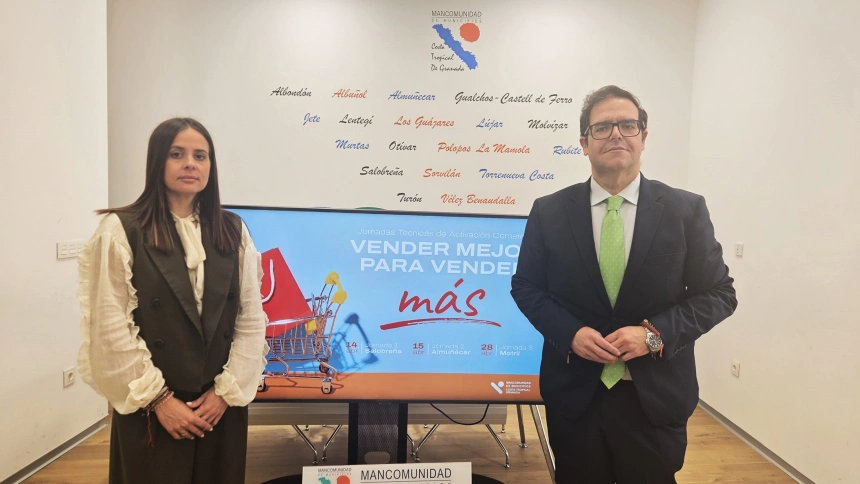 El presidente de la Mancomunidad de Municipios de la Costa Tropical, Rafael Caballero, junto a la delegada comarcal de Fomento y Empleo, Mª Carmen Vílchez, ha presentado las Jornadas Técnicas de Activación Comercial “Vender mejor para vender más”, una iniciativa formativa orientada a reforzar la competitividad del tejido comercial de la comarca.