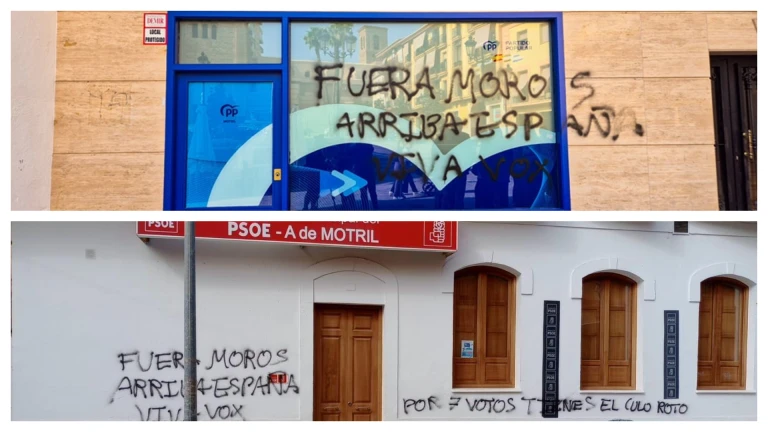 En la mañana de este miércoles han aparecido pintadas en las fachadas de las sedes políticas del Partido Popular y el Partido Socialista de Motril, con comentarios racistas. Ambos partidos han hecho público su malestar denunciando estos hechos y solidarizándose con el otro partido en la misma situación.