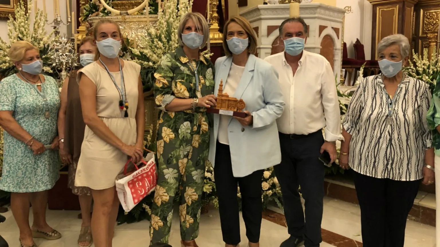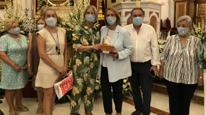 Entrega de un recuerdo a la alcaldesa de Motril en la Ofrenda Floral