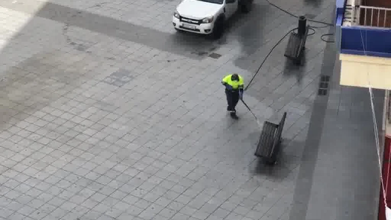 Limpiadores desinfectando las calles y plazas de Motril