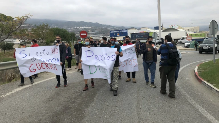 Protestas de agricultores por la crisis del pepino en Castell de Ferro