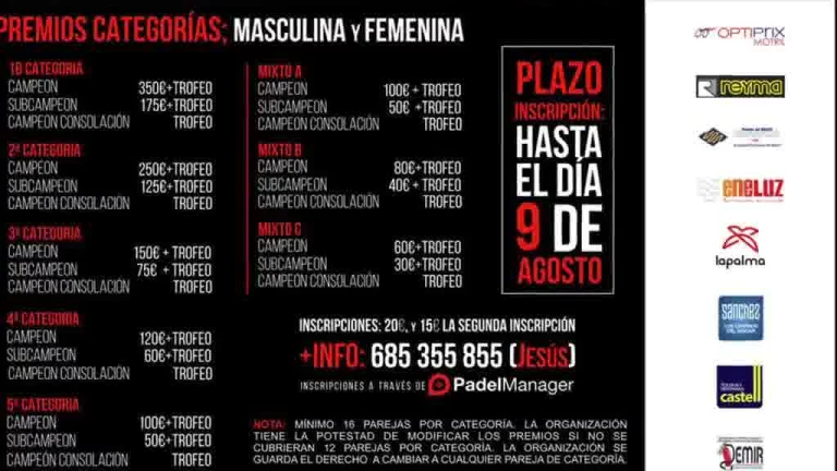 Ya queda menos para celebrar el XV Torneo de Pádel "Mármoles Martín Rubiño"