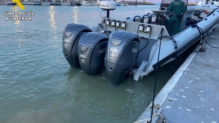 A primera hora, el instituto armado recibió un aviso sobre dos lanchas semirrígidas de alta potencia, lo que activó un dispositivo de agentes que se desplazó a la zona. Una de las neumáticas quedó varada y volcó por el temporal, arrastrando a la orilla todo el material que transportaba, junto con la propia embarcación.