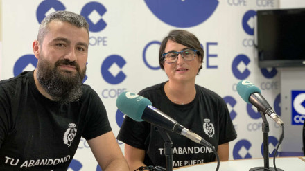 Sandra López y Jorge Fernández, delegados de "Tu Abandono Me Puede Matar" en Huelva, revinidican mejoras laborales para los funcionarios de prisiones.